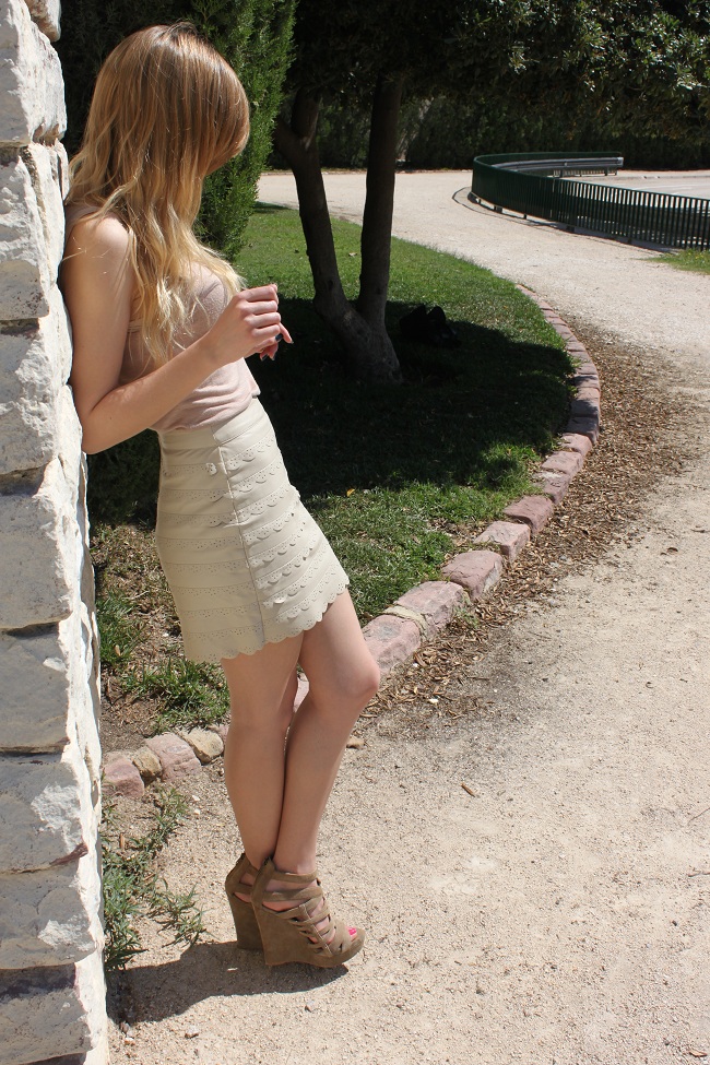 The nude color goes repeating as trend since the last summers, so most of my summer clothes are this color. Today I go monochrome (this only I do it when I like the color), and as almost always, i wear a simple sleeveless shirt to highlight this skirt that I am charmed with and seems to me very sophisticated.