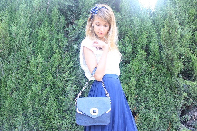 RETRO I love the retro style that I have obtained with this pleated skirt! To give a more romantic touch to the look I have used as complement this polka dot scarf in the hair (already you know that the polka dot is one of the "print" more seen this summer).