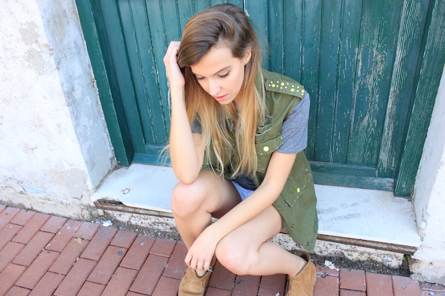 SHORTS.Today i'm wearing a fresh outfit based in the classic couple: booties and shorts; with a green vest to give color to the look. SHORTS. Hoy llevo un look fresco con el clásico: botines y shorts; y un chaleco con detalles neon para darle un toque colorido al conjunto.