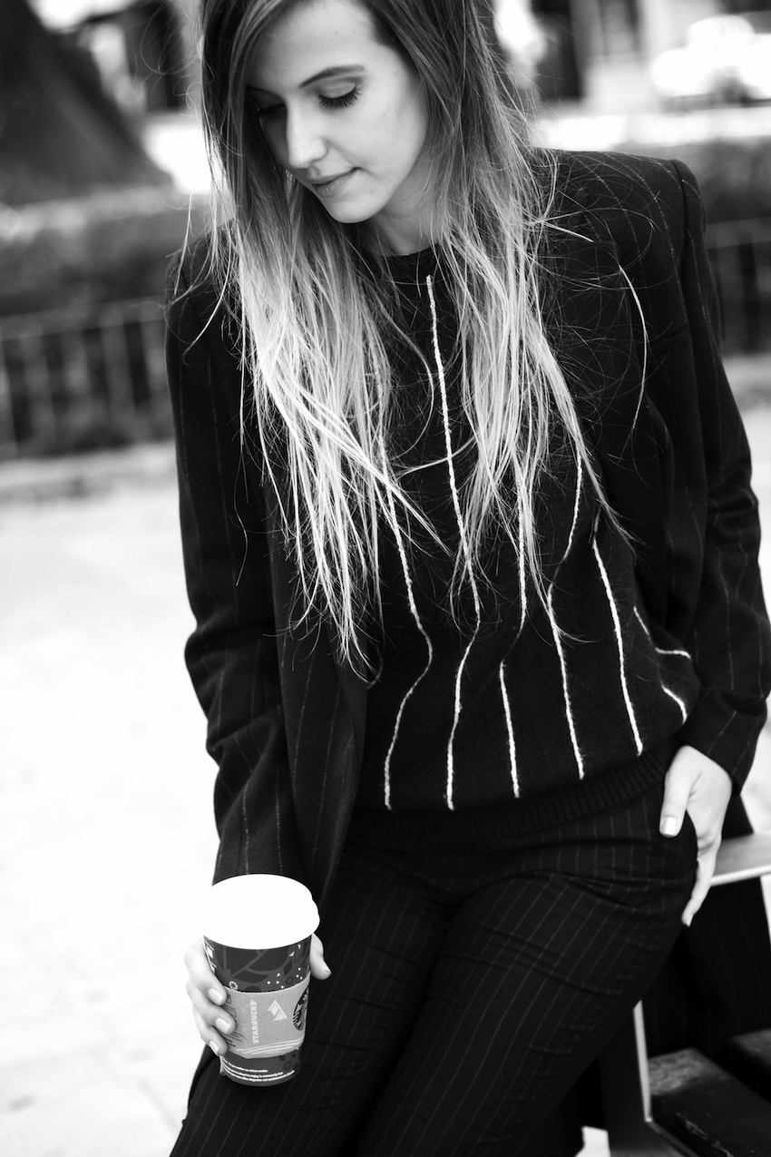 ALL items in this outfit are pinstripe, I wanted to create a total look with this new trend: do you like it? TODASlas prendas que llevo en este outfit tienen el estampado raya diplomática, me apetecía abusar de esta nueva tendencia y crear un total look; os gusta?