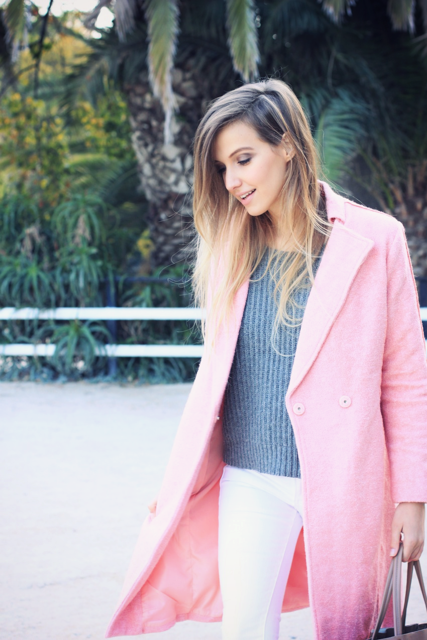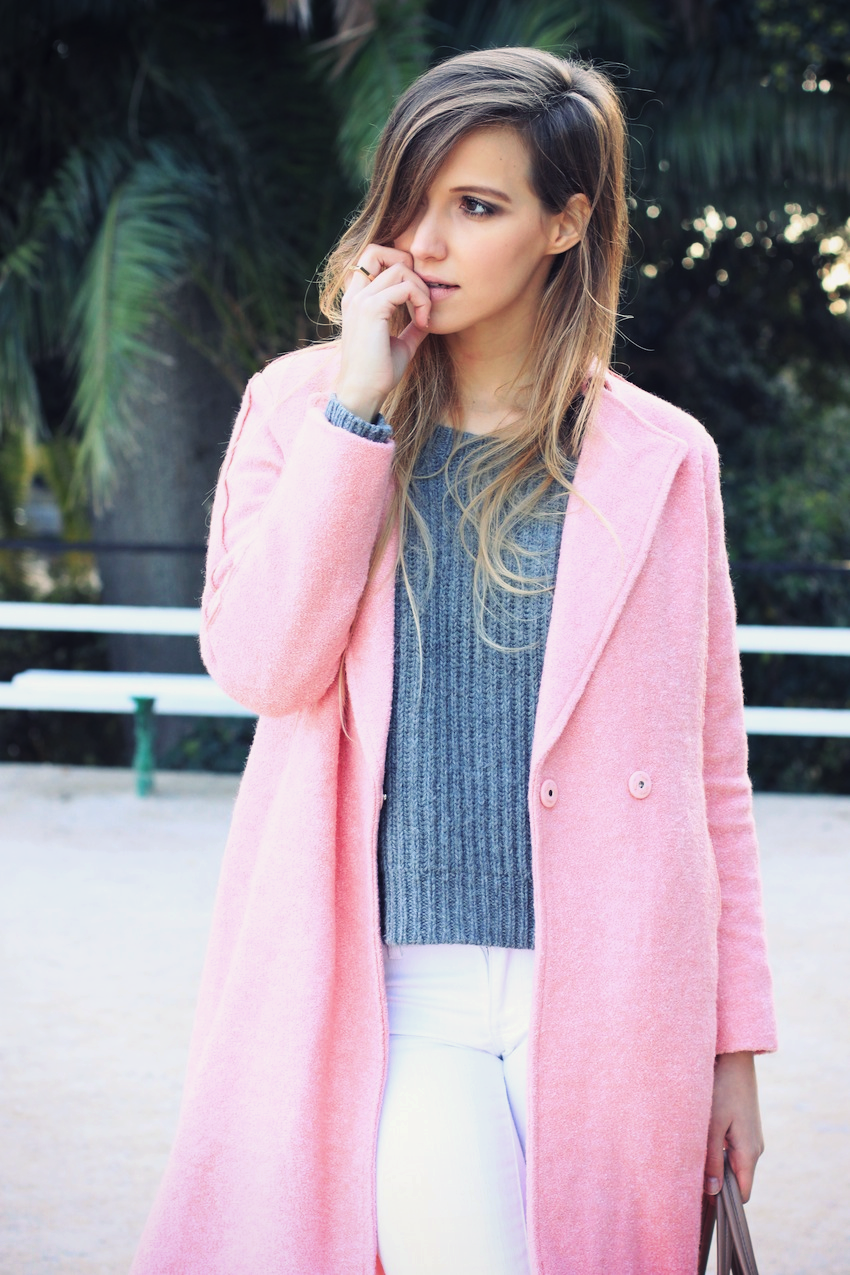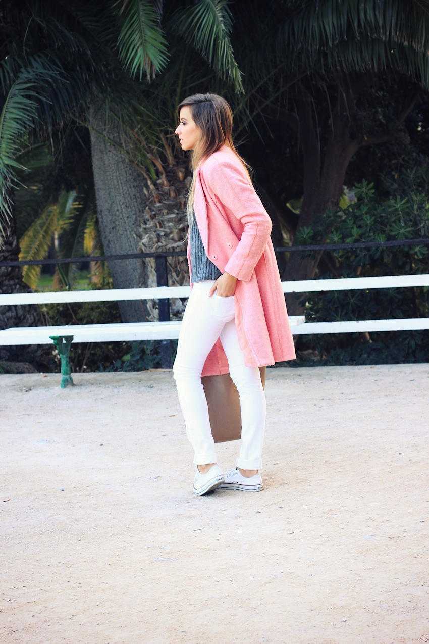 ABRIGO ROSA. Aquí os traigo otra propuesta para llevar un abrigo rosa, en este caso en un estilo sport (ya habéis visto esta prenda en un look más formal aquí). En este look casual no podían faltar mis deportivas blancas, además de unos cómodos vaqueros y un jersey XL de punto grueso; os gusta?