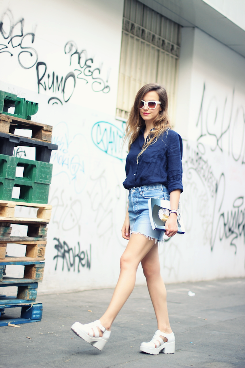 LINO. El combo: camisa estilo boyfriend y falda denim es de lo más cómodo y fresco. Este verano estoy apostando por las camisas de lino, le dan un aire desenfadado y fresco a los looks.