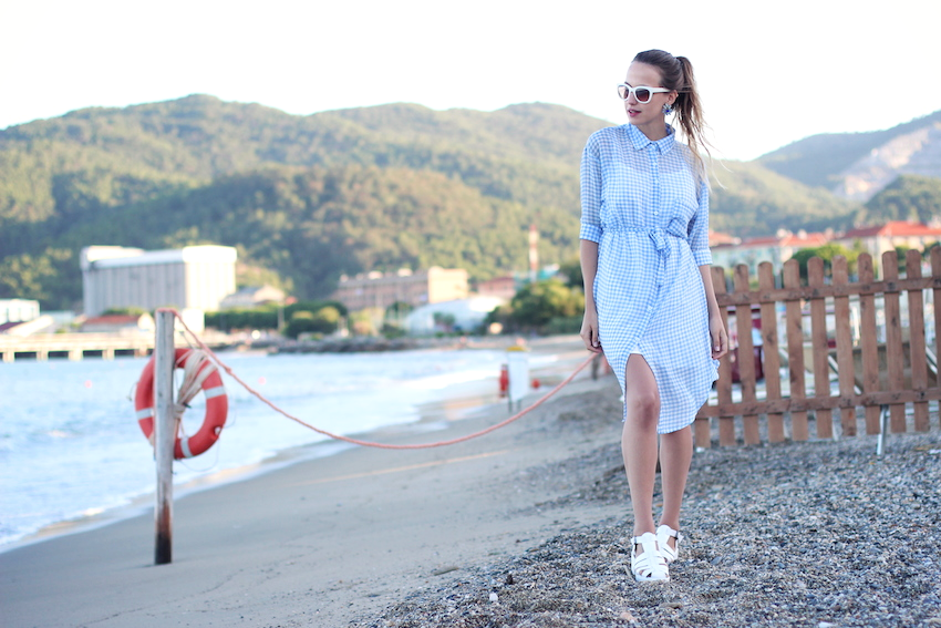 I love this gingham dress, the accesories are so cute!